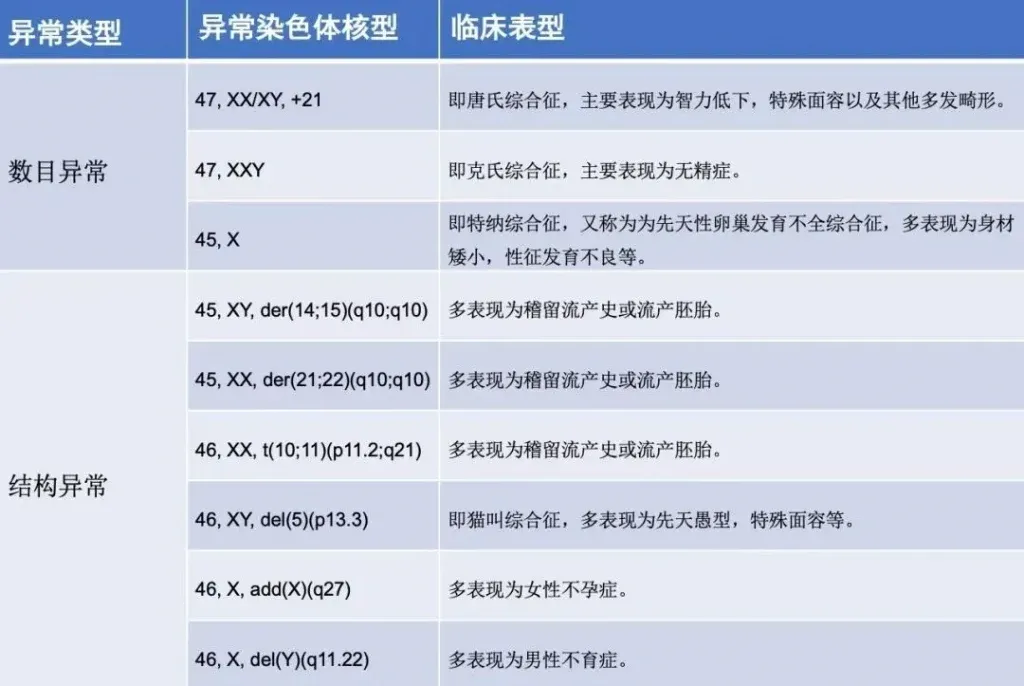 常见的异常染色体核型及其临床表型